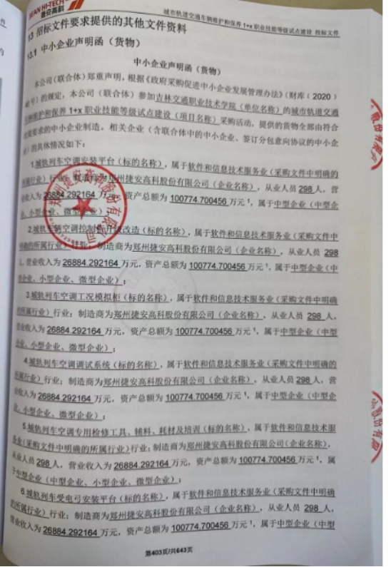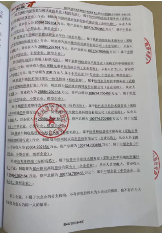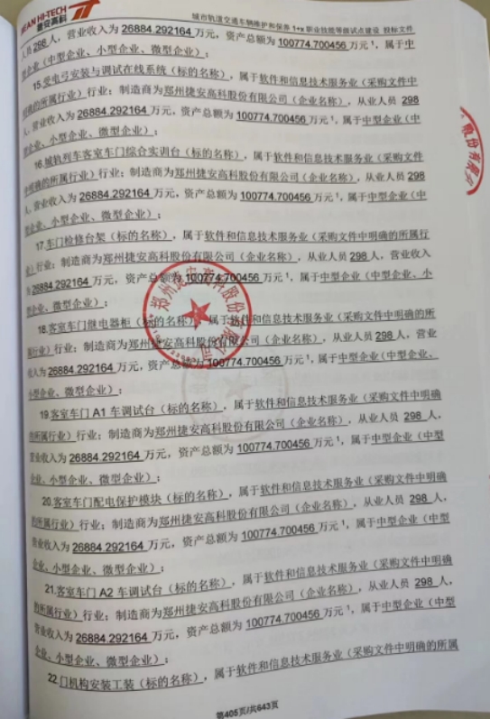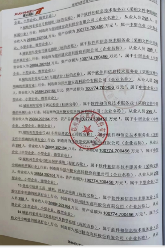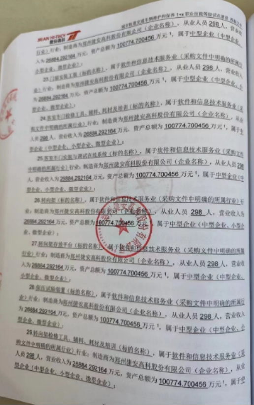 供应商名称:郑州捷安高科股份有限公司
