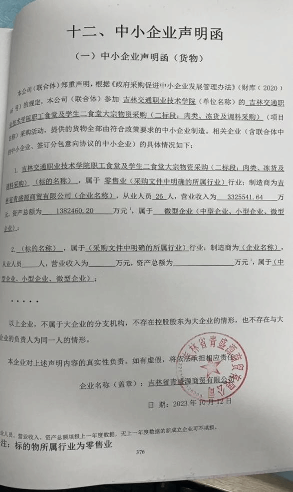 二、项目名称:吉林交通职业技术学院职工食堂及学生二食堂大宗物资采购