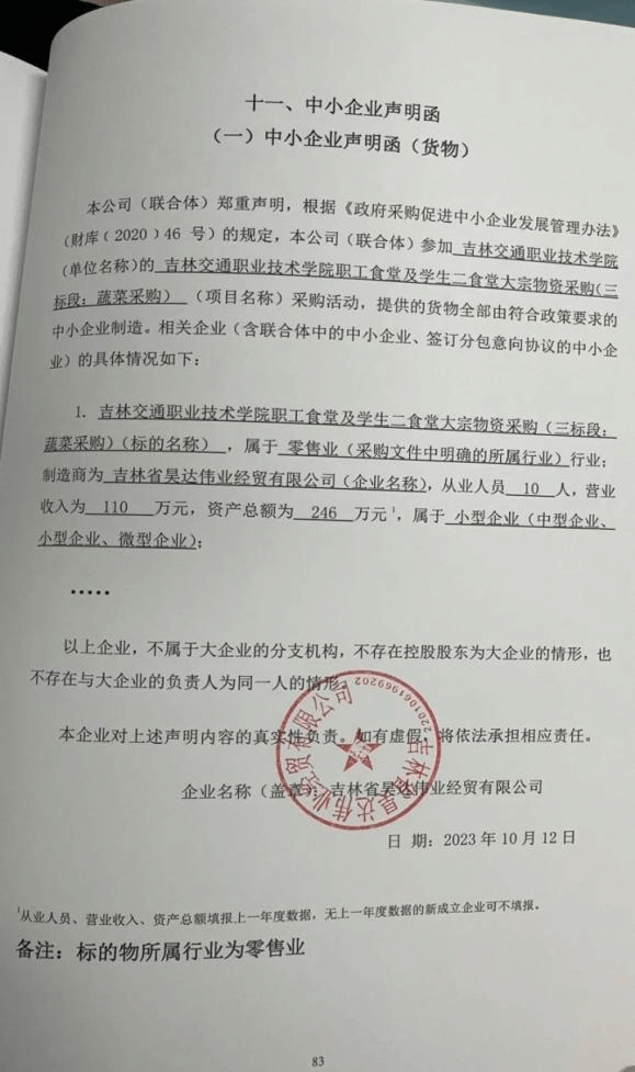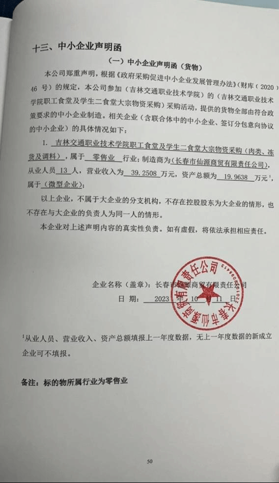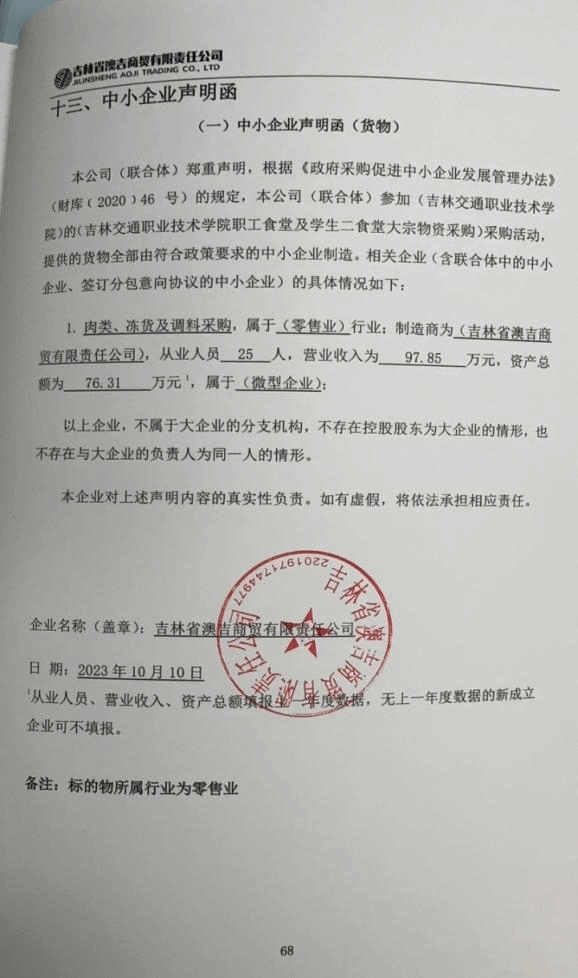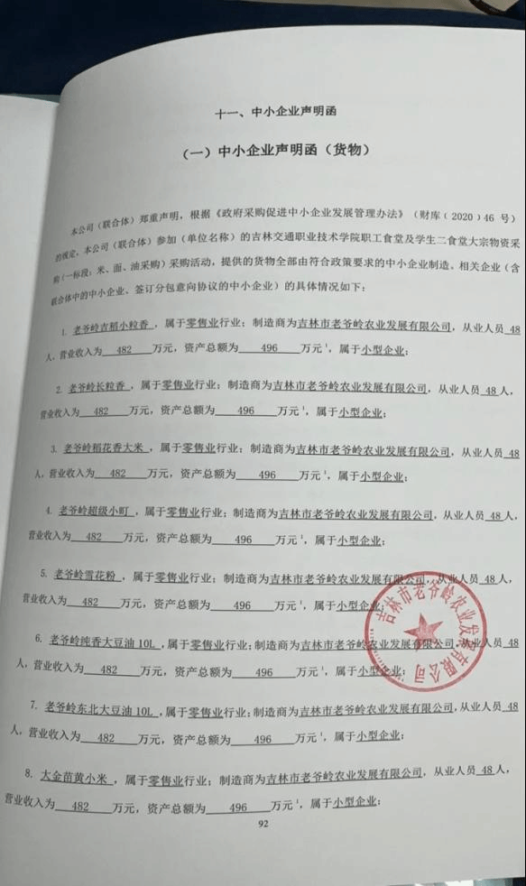 名称:吉林交通职业技术学院职工食堂及学生二食堂大宗物资采购(一标段:米、面、油采购) 供应商名称:吉林省澳吉商贸有限责任公司 品牌(如有):长粒香等 规格型号:按需提供等 数量:具体采购数量最终以实际发生为准 单价:/ 供应商名称:吉林市老爷岭农业发展有限公司 品牌(如有):老爷岭等 规格型号:5kg/袋等 数量:具体采购数量最终以实际发生为准 单价:/ 名称:吉林交通职业技术学院职工食堂及学生二食堂大宗物资采购(二标段:肉类、冻货及调料采购) 供应商名称:吉林省澳吉商贸有限责任公司 品牌(如有):吉星肉业等 规格型号:按需提供等 数量:具体采购数量最终以实际发生为准 单价:/ 供应商名称:长春市仙源商贸有限责任公司 品牌(如有):国权清真等 规格型号:1KG等 数量:具体采购数量最终以实际发生为准 单价:/ 名称:吉林交通职业技术学院职工食堂及学生二食堂大宗物资采购(三标段:蔬菜采购) 供应商名称:吉林省昊达伟业经贸有限公司 品牌(如有):昊达伟业 规格型号:/ 数量:具体采购数量最终以实际发生为准 单价:/ 供应商名称:吉林省青盛源商贸有限公司 品牌(如有):/ 规格型号:市斤等 数量:具体采购数量最终以实际发生为准 单价:/ |