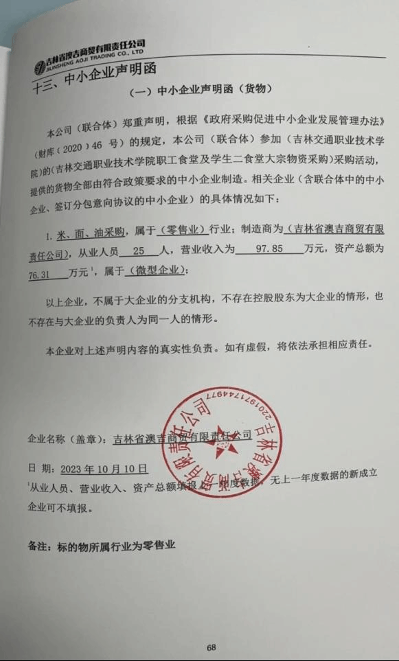 第一标段名称:吉林交通职业技术学院职工食堂及学生二食堂大宗物资采购(一标段:米、面、油采购)