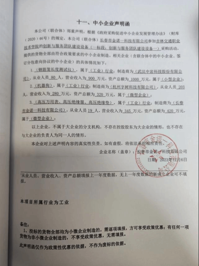 一标段:创新与服务团队建设设备一 货物名称:钢筋笼长度测试仪、机器狗、高压万用表、高压绝缘服、高压绝缘垫 供应商名称:长春市金诺一科技有限公司 品牌(如有):中岩科技、宇树科技、金诺一、金诺一、金诺一 规格型号:RSM-RLT(A)、G02-U4、定制、定制、定制 数量:1台、2台、5个、20套、10张 单价:/ 二标段:创新与服务团队建设设备二 货物名称:工业机器人、板件排序机构、固定点焊机、螺母输送机、控制系统 供应商名称:吉林省仲信科技有限公司 品牌(如有):天机、诺巴特、同赢、同赢、诺巴特 规格型号:SR6、DW-73512、DNK-50KW、NUT-M6、KPS-310D 数量:1台、1套、1台、1台、1套 单价:/ 三标段:创新与服务团队建设设备三 货物名称:视觉缺陷检测平台、小型化激光器、视觉检测平台配套计算机、小型化工件检测平台、智能手表终端、AI开发者套件、AI在线算力及程序设计评估服务系统服务、AI边缘计算开发套件 供应商名称:吉林省翌兴科技有限公司 品牌(如有):定制、成都晗森、新华三、定制、真匠、全爱、天机智算、亚博 规格型号:定制、LIBS-05、H3C UniServer R4900 G3、定制、TK WATCH VP02、QA-Atlas200I DK、A100-GPU高性能云服务、ROSMASTER R2 数量:1套、1套、1个、1套、1个、1套、1张、1套 单价:/ |