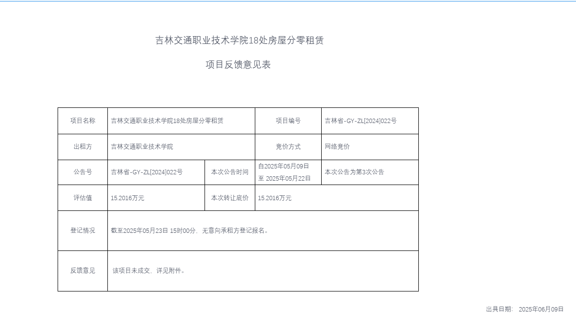 吉林交通职业技术学院18处房屋分零租赁项目反馈...